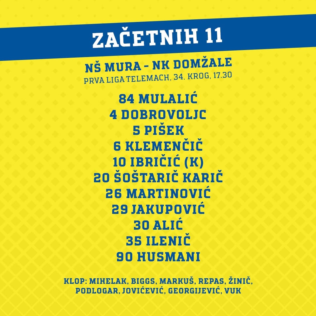 Domžale: Mulalič, Alič (od 62. Podlogar), Dobrovoljc, Husmani (od 62. Jovičević), Ibričić, Ilenić, Jakupović, Šoštarič Karić, Klemenčić, Martinović (od 89. Vuk), Pišek (od 77. Repas). Trener: Dejan Djuranovič.