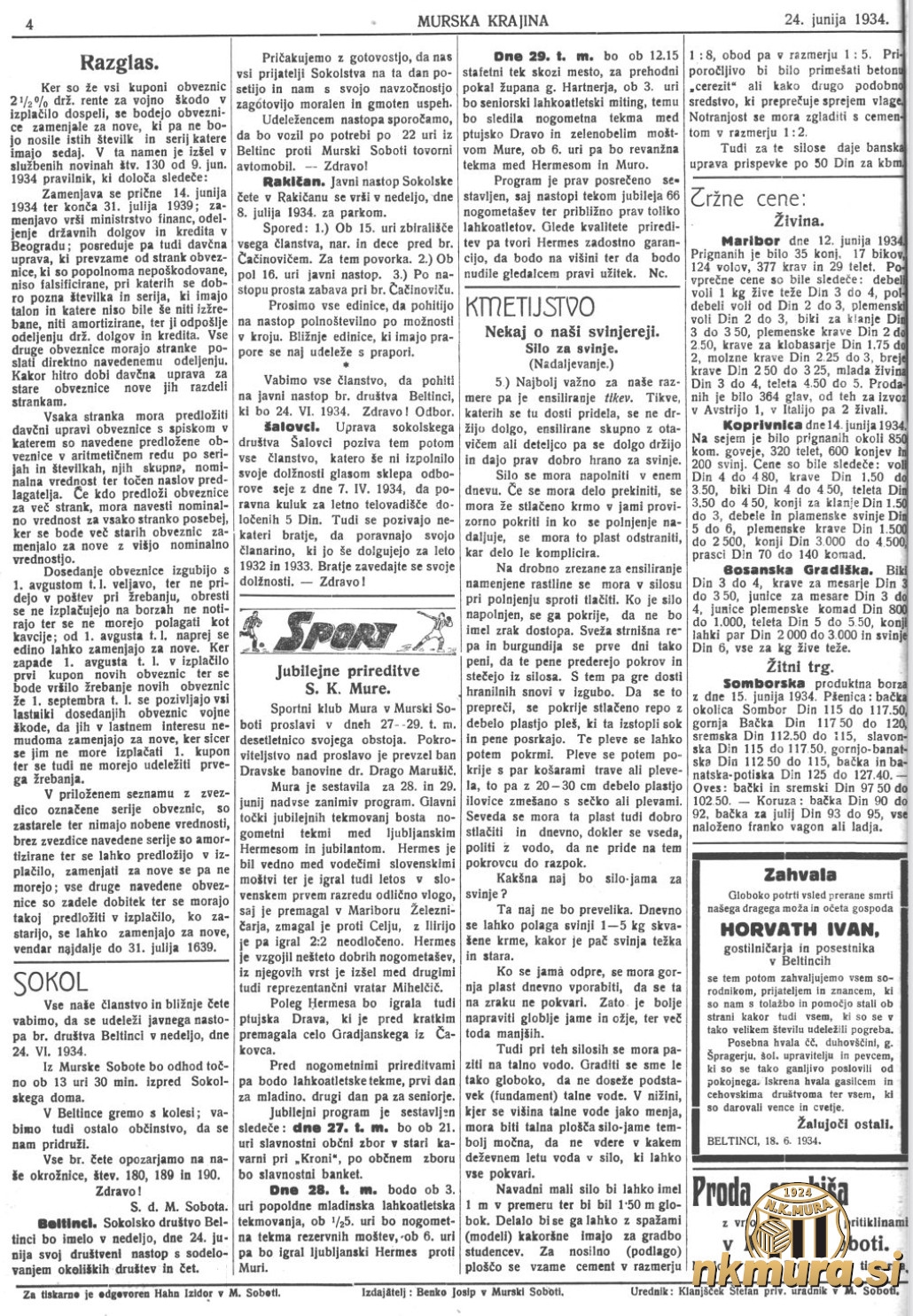 Sport klub Mura, ki v letošnjem letu praznuje deseto obletnico delovanja, bo od 27. do 29. junija 1934 pripravil številne prireditve. Pokroviteljstvo nad proslavo pa je prevzel ban Dravske banovine, dr. Drago Marušič.