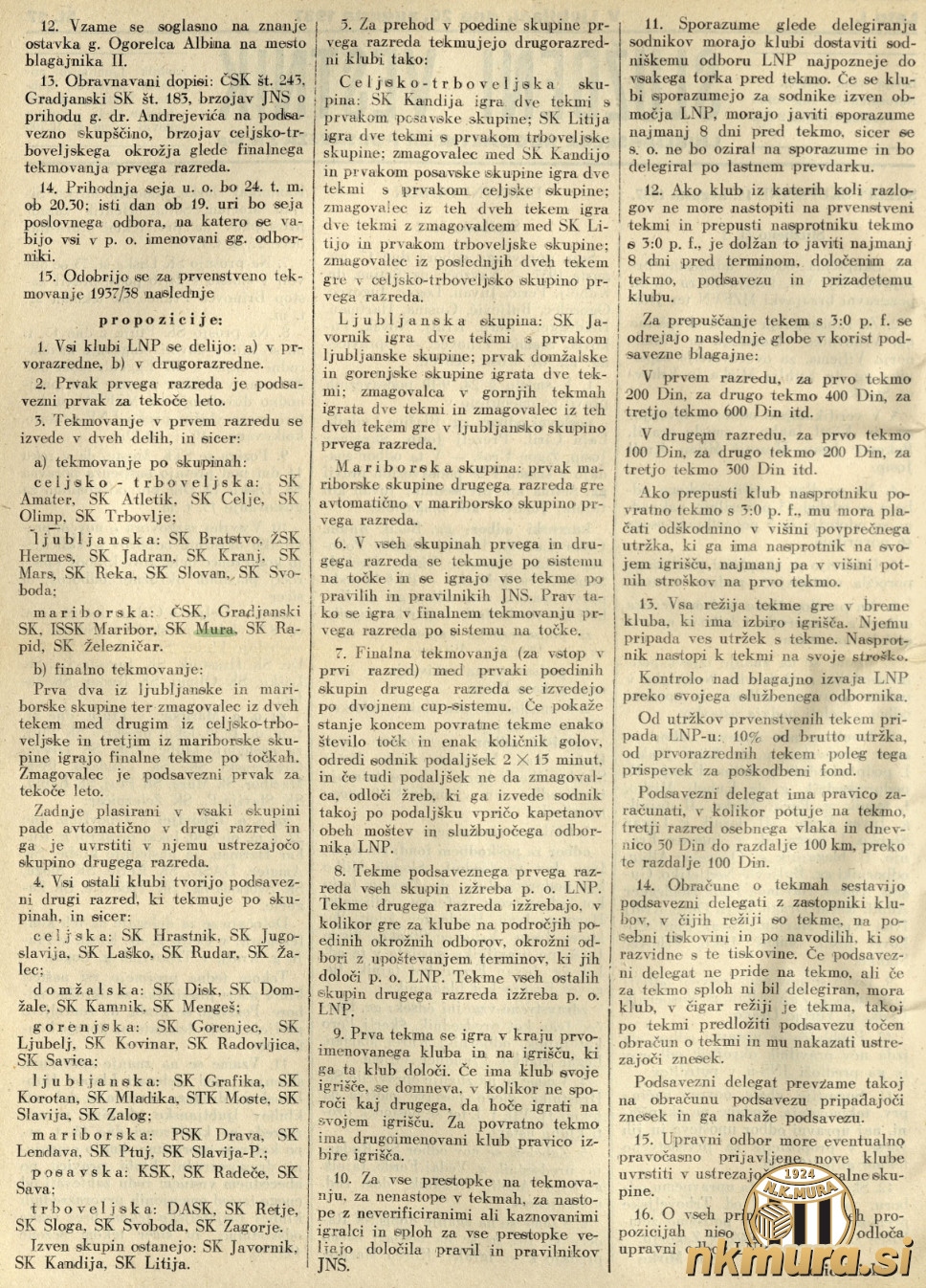 Mura bo tekmovala v I. razredu mariborske skupine, kjer bodo tekmovali: Čakovečki ŠK, Građanski Čakovec, I. SSK Maribor, Mura, Rapid Maribor in Železničar Maribor. Čeprav je Mura ob koncu sezone dobila dve dodatni tekmi z Građanskim, se je slednji prav tako uvrstil v I. razred. Građanski se je namreč na sklepe LNP pritožil na Jugoslovansko nogometno zvezo (JNS), LNP pa je nato sprejela salomonsko rešitev in Građanskemu prav tako dovolila igranje v višjem rangu tekmovanja.
