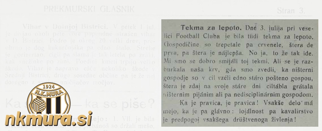 Prva dokumentirana tekma Mure. Avtorske pravice: nkmura.si Foto: Prekmurski Glasnik, 10. julij 1921