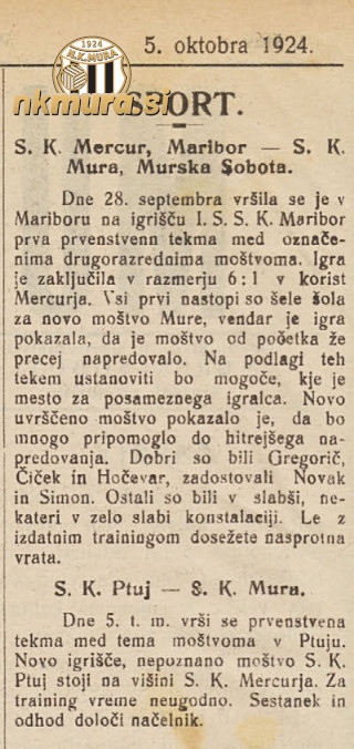 Naslednjo tekmo bo Mura igrala 5. oktobra 1924, ko bo gostovala na Ptuju.