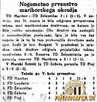 V 5. krogu tekmovanja v mariborskem telesnovzgojnem okrožju je Sobota gostila zadnjeuvrščeni Ptuj in zmagala s 5:0. Ob polčasu je bilo 2:0.
