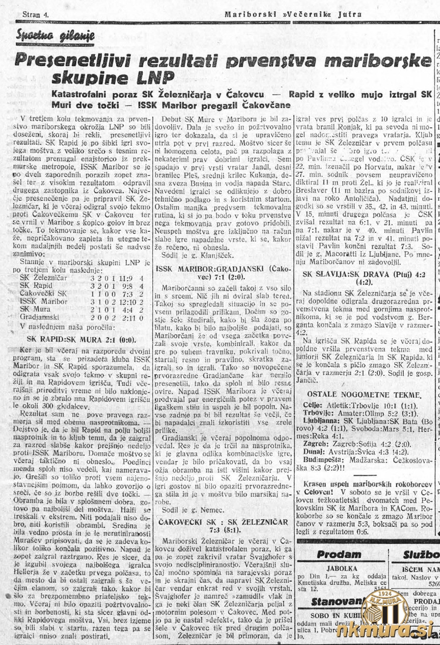 Tekmo 2. kroga bi Mura morala igrati prejšnji teden, vendar je zaradi gostovanja Čakovečkega ŠK v Avstriji predstavljena na november 1937.
