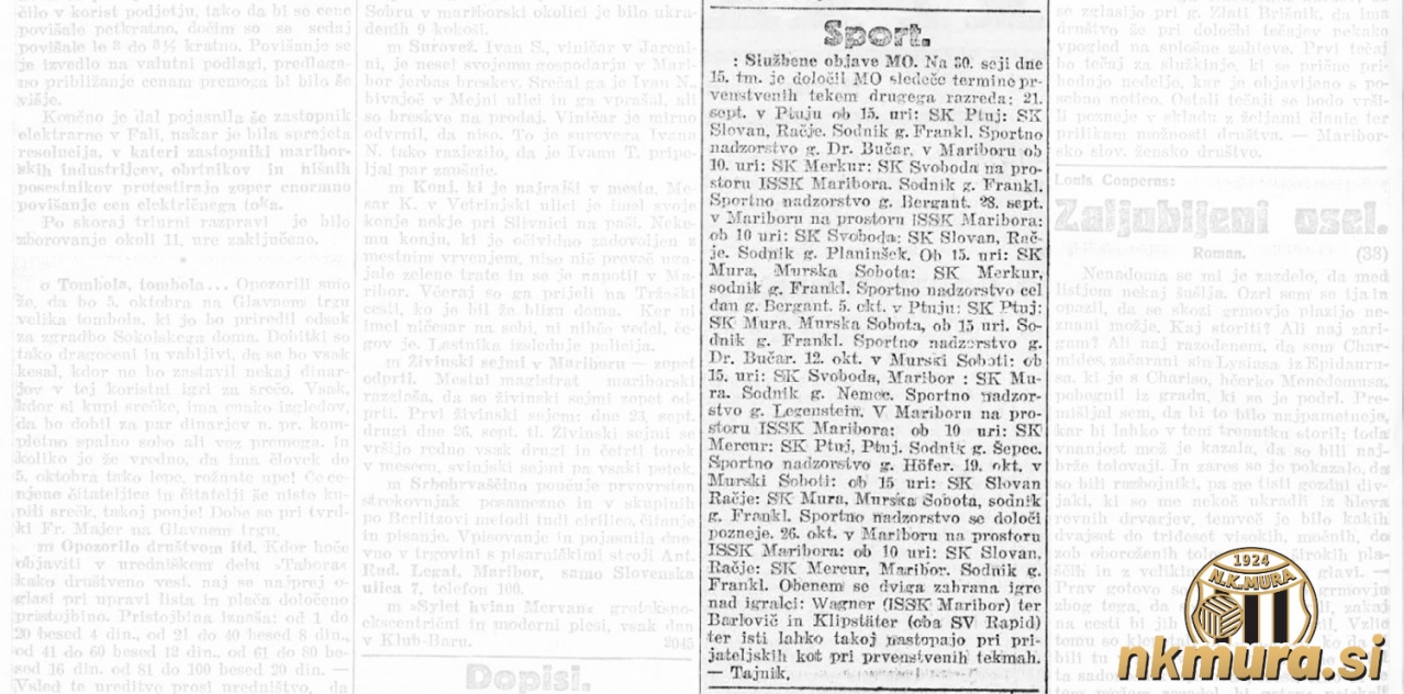 Razpored prvenstvenih tekem drugega razreda. Avtorske pravice: nkmura.si Foto: Tabor, 18. september 1924
