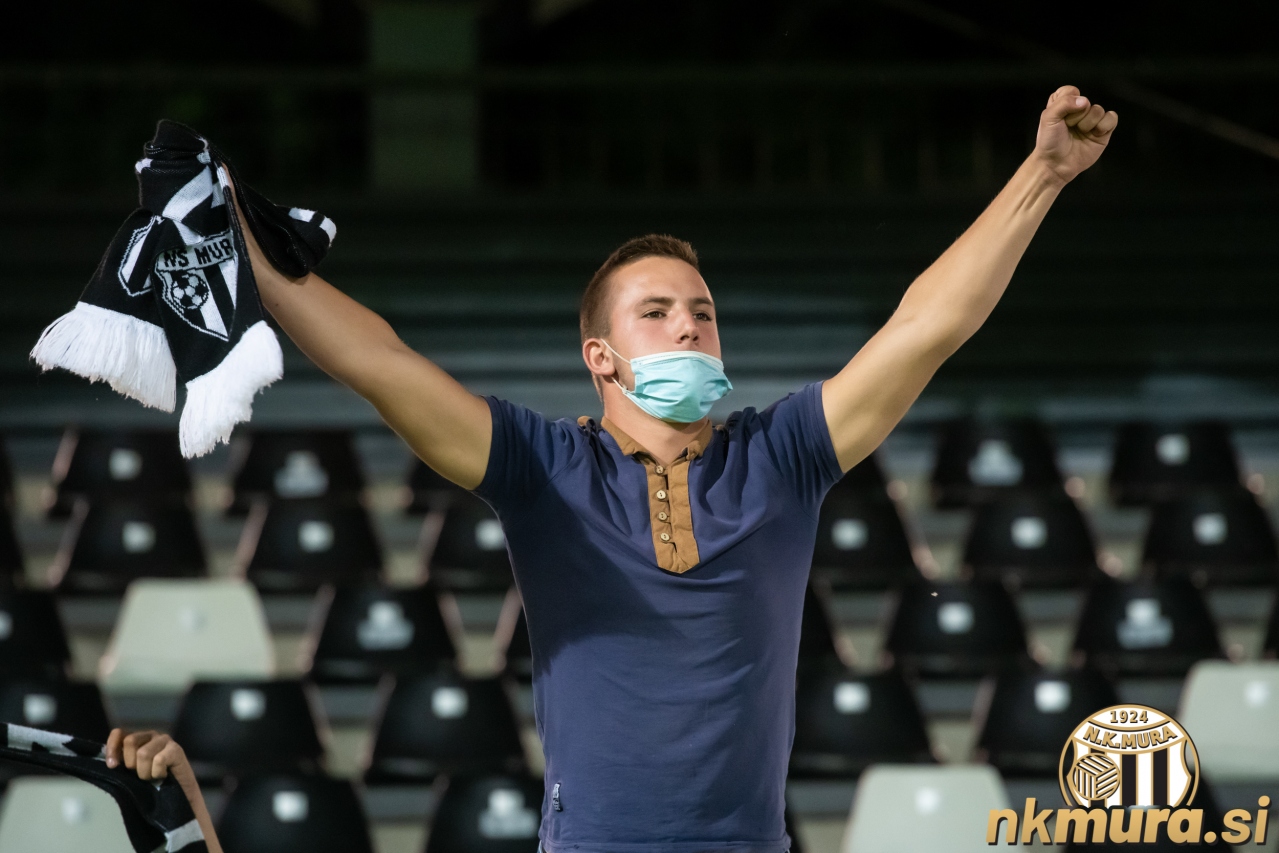 Na tribunah so bili lahko le gledalci s sezonskimi vstopnicami in z maskami. Avtorske pravice: nkmura.si Foto: Aleš Cipot/fotolens.si