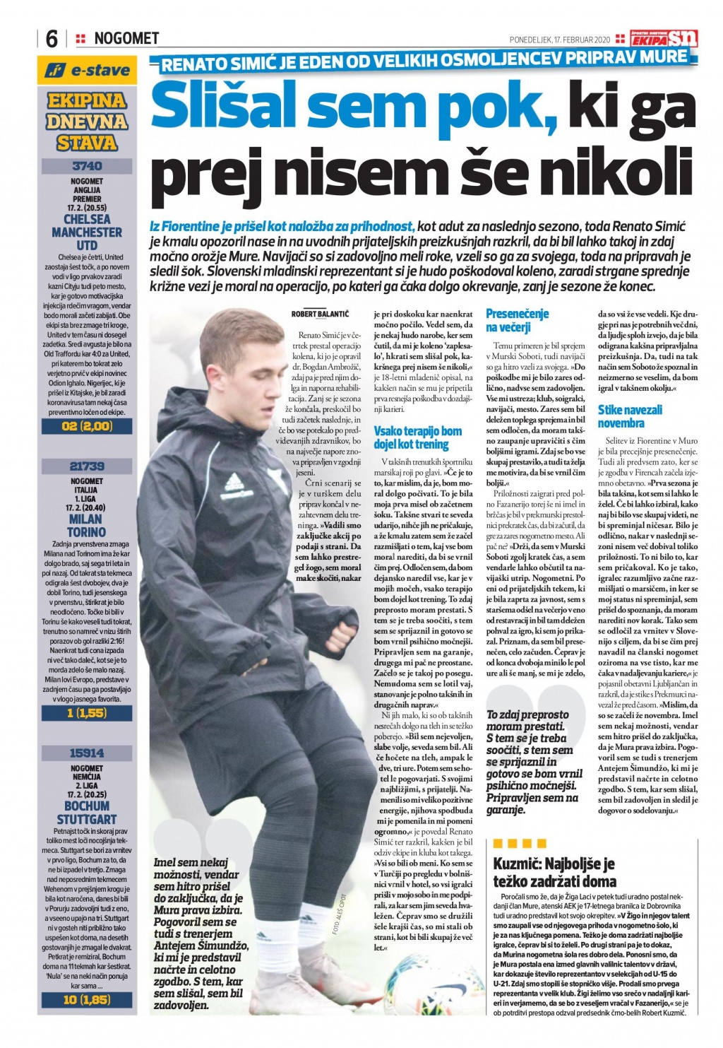 Renato Simić, ki je Muro okrepil v zimskem delu sezone 2019/2020 si je na treningu strgal prednje križne vezi. V intervjuju za Ekipo je pojasnil kako je prišlo do dogovora z Muro, kako se počuti po opreaciji in kdaj načrtuje vrnitev na igrišča.