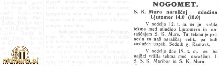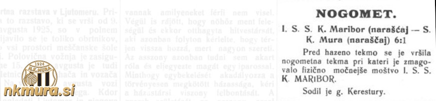 Naraščajniki Mure so izgubili proti vrstnikom I.SSK Maribora Avtorske pravice: nkmura.si Foto: Mörszka krajina, 26. julij 1925