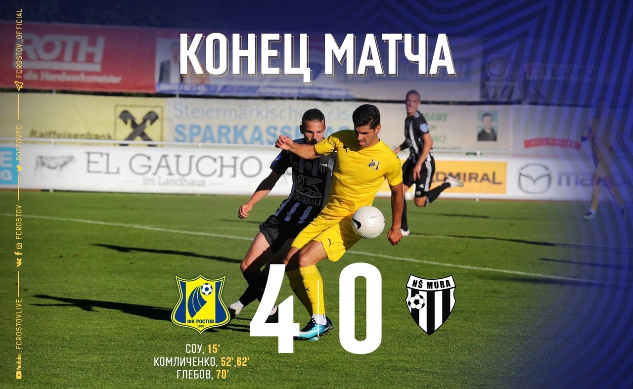 Nogometaši Mure so danes odigrali zadnjo pripravljalno tekmo pred uradnimi tekmami v sezoni 2021/22. V avstrijski Radgoni je bil nasprotnik Mure ruski Rostov, ki je zmagal z 0:4. Ob polčasu je bilo 0:1. Rostov je v minuli sezoni ruske Premier Lige zasedel deveto mesto med šestnajstimi ekipami.