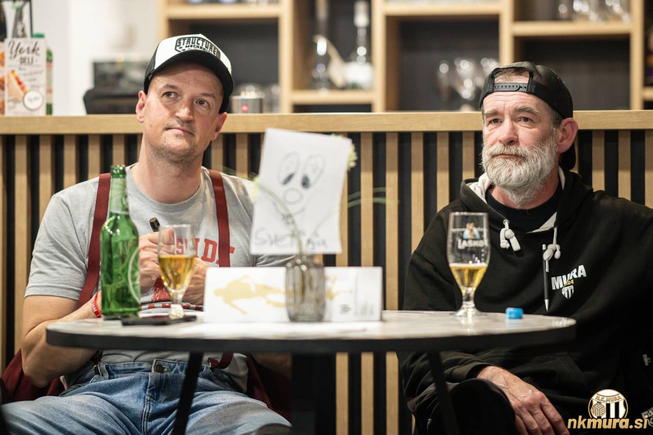 Mimohod na terasi je bil pester. Direktor Schulz je šel mimo z novo mlado okrepitvijo, Smoljo, ki je uradni govorec kluba, je že tipkal izjavo za javnost. Oba sta pozdravila zbrane, tudi te povsem naključne. Simon, ta glavni spletišča NK Mura skozi čas, je še enkrat več z ostrim očesom (beri: fotoaparatom) preverjal, kako daleč so bagri na delu med glavno in severno tribuno … Pa čeprav so le nekaj dni na gradbišču. V WhatsApp skupini je Matjaž medtem spraševal, kako do vstopnic za tekmo z graškim Šturmom – vidi se, da pravim Murašem ni mar za ta naš klub. Že 100 let! Pač jo ljubiš, nisi kriv.