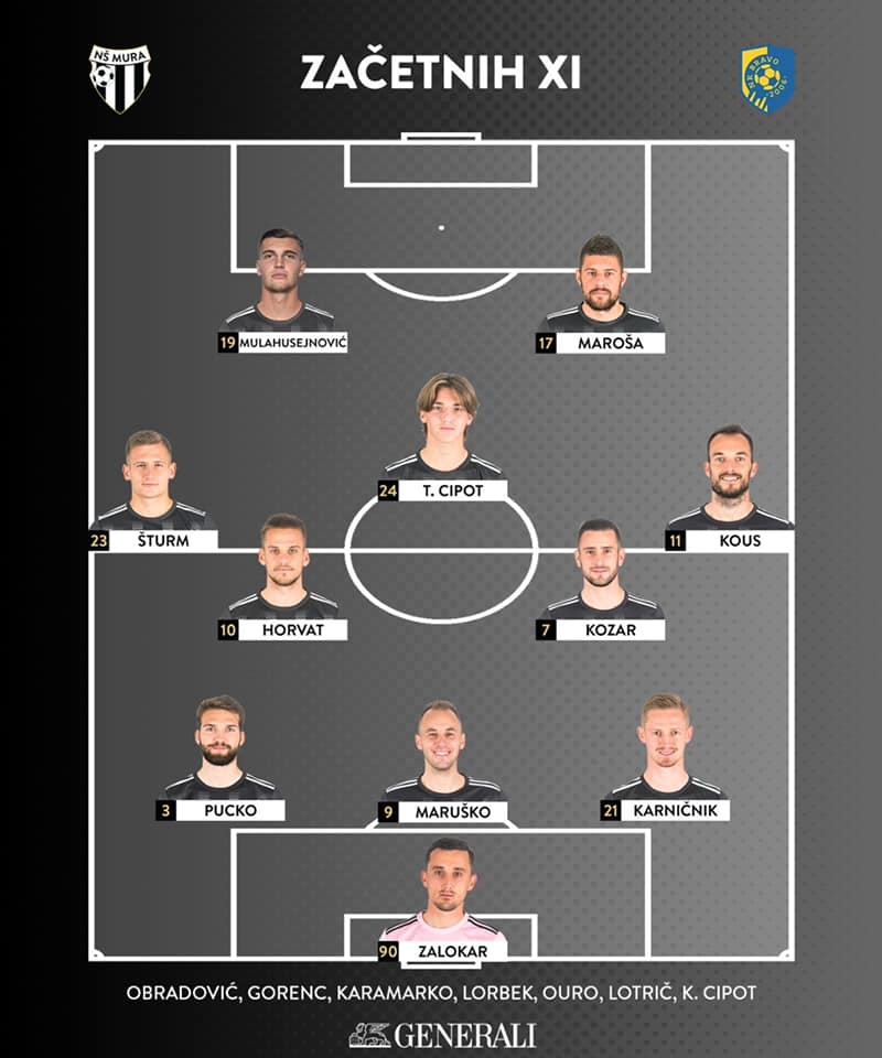 Postava Mure: Zalokar, Pucko, Koza (od 72. Ouro), Maruško, Horvat (od 84. Lorbek), Kous, Maroša (od 72. K. Cipot), Mulahusejnović, Karničnik, Šturm in T. Cipot (od 111. Gorenc). Trener: Ante Šimundža.