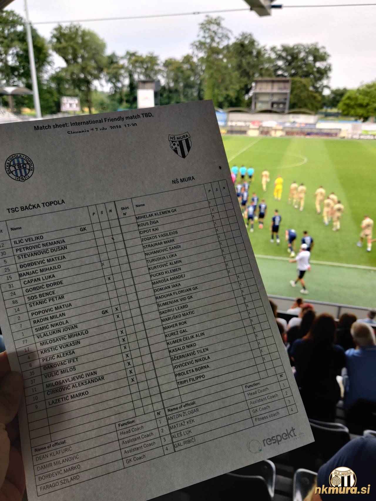 Nogometaši Mure so v Fazaneriji odigrali predzadnjo pripravljalno tekmo pred prvenstvom. Gost je bila lani tretjeuvrščena ekipa srbske prve lige TSC Bačka Topola. Srbi so bili boljši v vseh segmentih igre in povsem zasluženo zmagali z 0:4 (0:3).