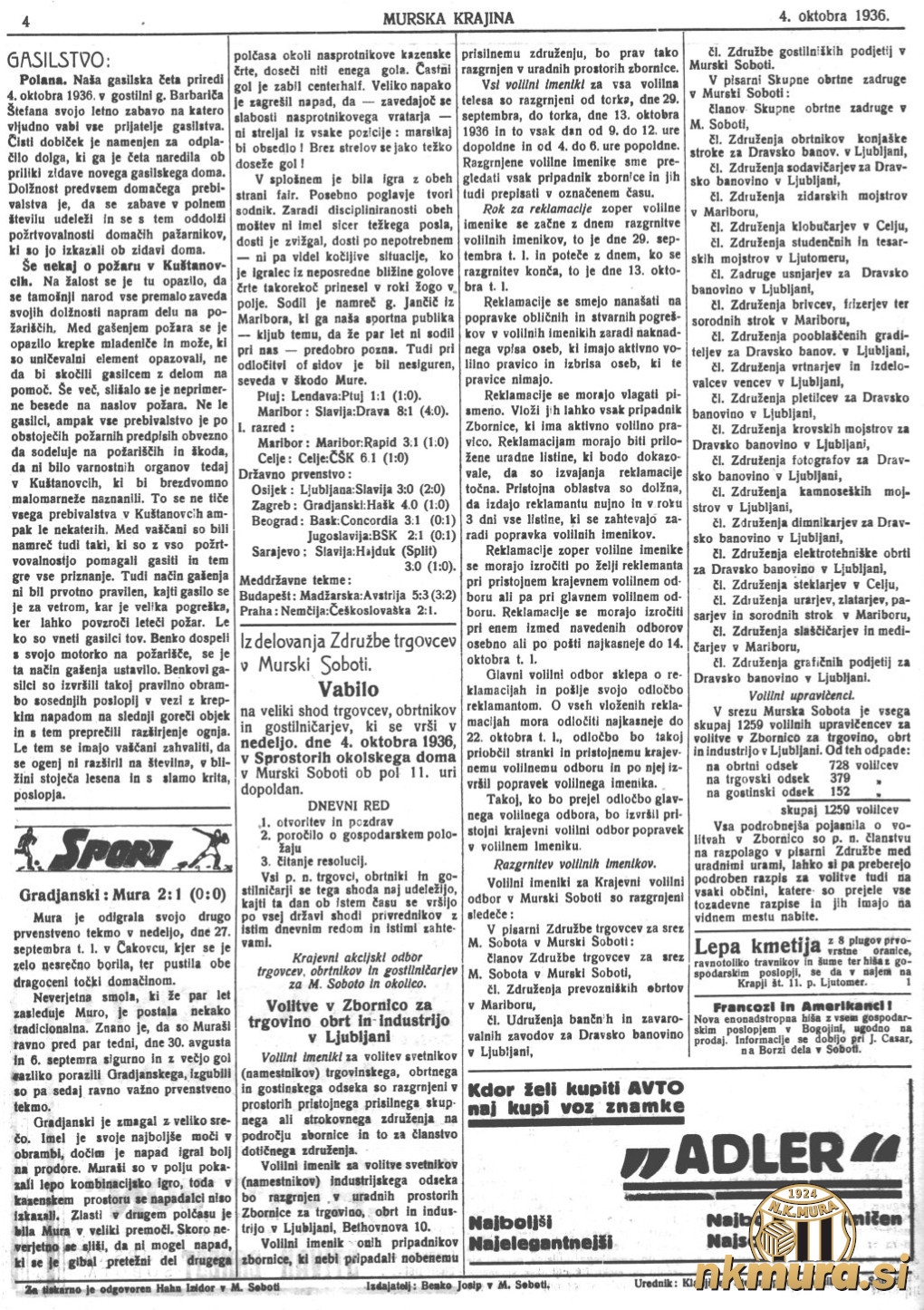 V 2. krogu prvenstva sezone 1936/1937 so muraši gostovali v Čakovcu pri Građanskemu in presenetljivo izgubili z 2:1 (0:0).