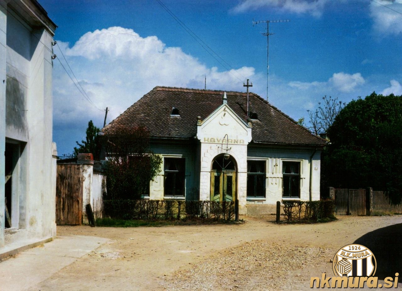 Na sredini petdesetih let je bilo zbirališče igralcev, upravnega odbora in navijačev v kavarni Sočič. Nahajala se je ob nekdanji glasbeni šoli na današnji ulici Staneta Rozmana. Fotografija je bila računalniško spremenjena v barvno. Avtorske pravice: nkmura.si Foto: Jože Kološa Kološ