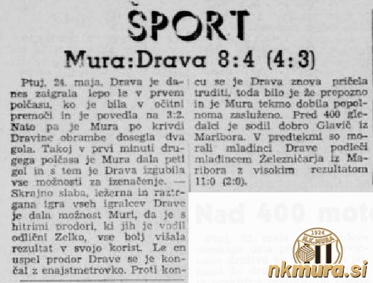 V prvem polčasu je bila tekma dokaj izenačena, Drava pa je v nekem trenutku povedla s 3:2, nakar so Sobočani po neprevidnosti domače obrambe dosegli dva zadetka. Sobočani so takoj na začetku drugega polčasa dosegli še en zadetek in na nek način zapečatili usodo Drave. Najboljši je bil Feri Zelko, ki je vodil vse napade našega kluba.