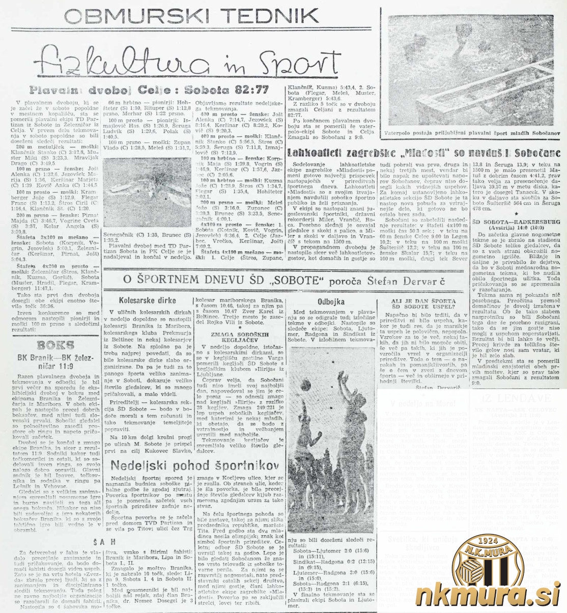 Vabilo na dan športa. Avtorske pravice: nkmura.si Foto: Obmurski tednik, 24. julij 1953