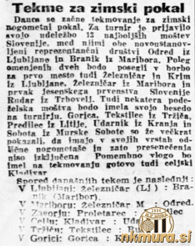 Danes se prične tekmovanje za zimski nogometni pokal NZS. Za turnir se je prijavilo 13 moštev, tudi Sobota, ki pa bo v prvem krogu prosta.