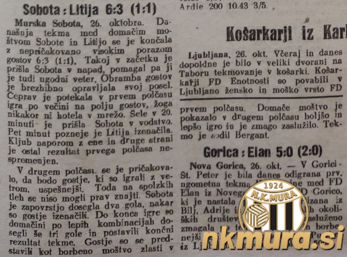Nogometaši Sobote so v 5. krogu druge skupine slovenskega nogometnega prvenstva gostili Litijo in jo premagali s kar 6:3. Polčas se je končal neodločeno 1:1. Z zmago so se Sobočani oddolžili za poraz v preteklem krogu, ko so s kar 7:0 izgubili v Kranju.