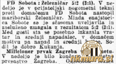 Nogometaši Sobote so se v prijateljski tekmi pomerili z drugo ekipo mariborskega Železničarja in zmagali s 5:2 (3:1).
