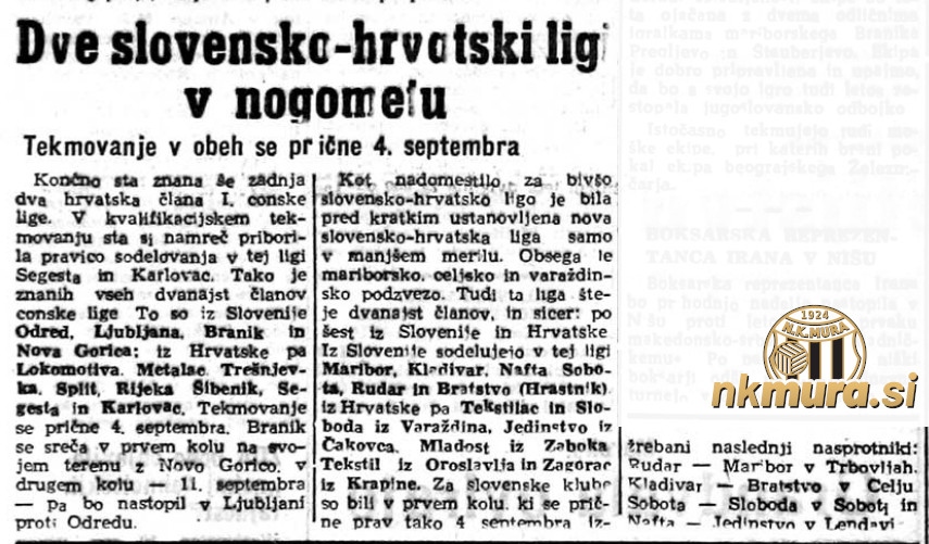 V Mariboru so se sestali delegati varaždinske, mariborske in celjske nogometne podzveze in skupaj s predstavniki društev formirali področno ligo iz omenjenih treh podzvez. Štela bo 12 članov in sicer 6 iz varaždinske in po 3 iz mariborske in celjske podzveze. Med udeleženci lige je tudi Sobota.