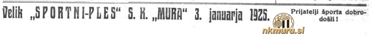 Športni klub Mura je v soboto, 3. januarja 1925 priredil športni ples. Bil je dobro obiskan, na njem pa so se zbrali prijatelji športa. Na plesu so zbrali več kot 5000 dinarjev.