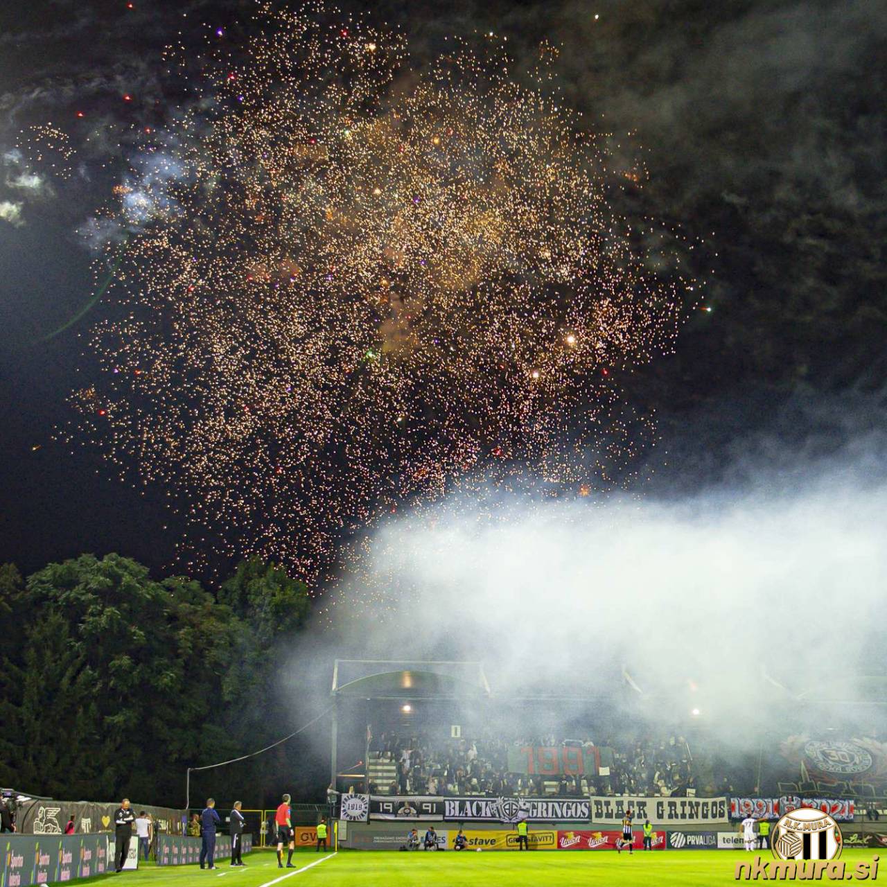 Ognjemet na tekmi Mura : Olimpija, 11. september 2021. Avtorske pravice: nkmura.si Foto: Aleš Cipot/fotolens.si