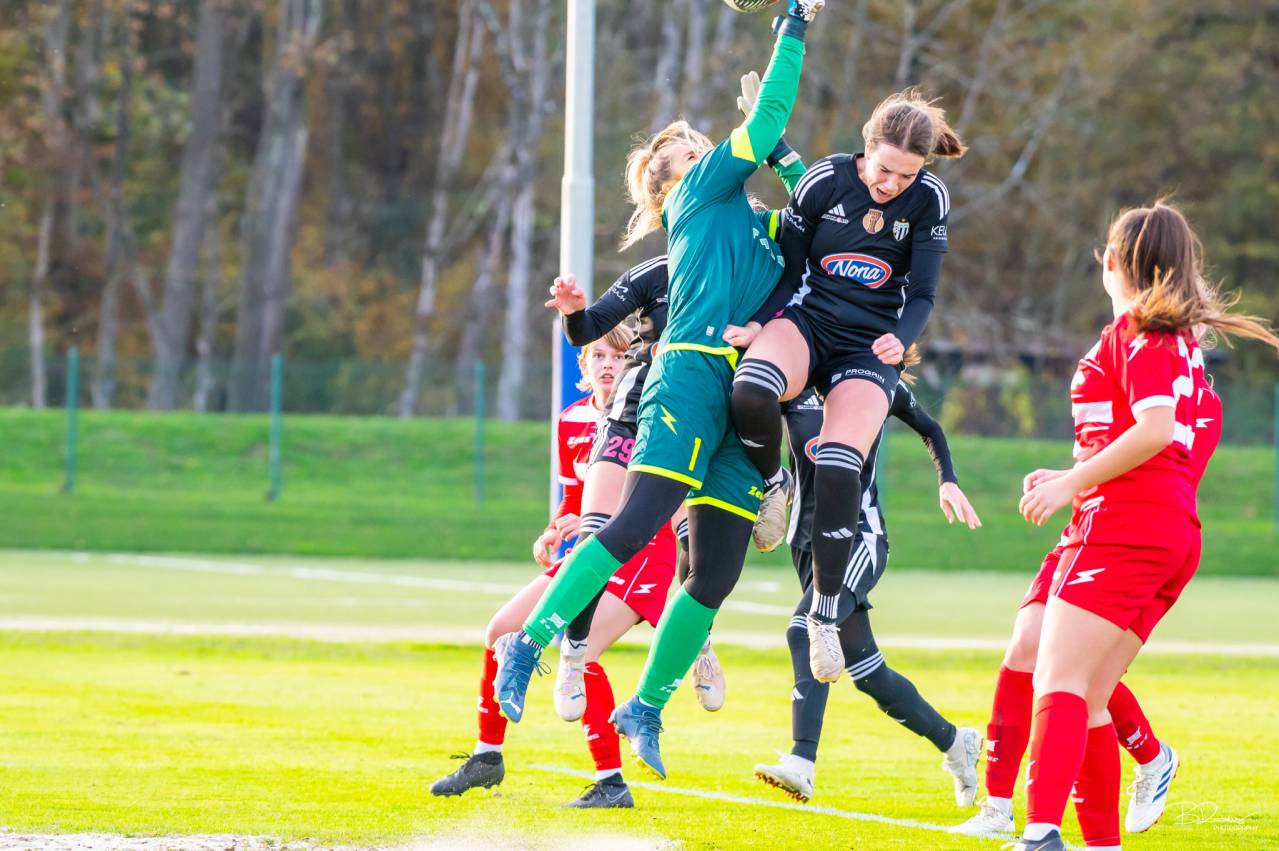 Nogometašice Mure so v 10. krogu SŽNL gostile Aluminij. Dvoboj so dobile s 5:0 (1:0). Tekma je bila v Radencih. Črno-bele si s tekmo manj delijo prvo mesto z Olimpijo.