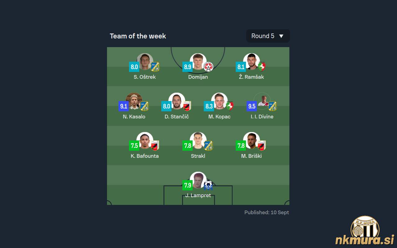 Preteklo kolo v 2. SNL je bilo zelo uspešno za dva posojena in dva nekdanja muraša. Niko Kasalo, Jaka Domjan, Vito Štrakl in Jan Lampret so se po Sofascore-u uvrstili v najboljšo enajsterico 5. kroga.
