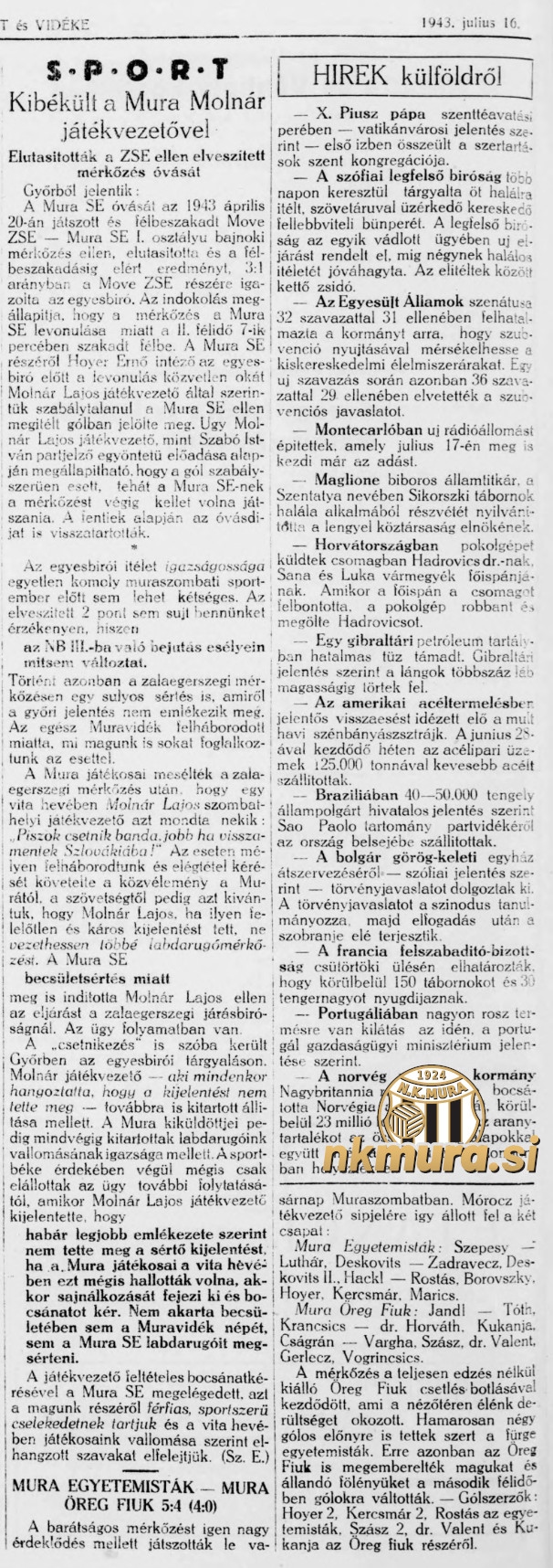 Na igrišču Mure je bila prijateljska tekma med old boysi Mure in ekipo Mure, ki so jo sestavljali študenti. Študenti so zmagali s 5:4 (4:0).