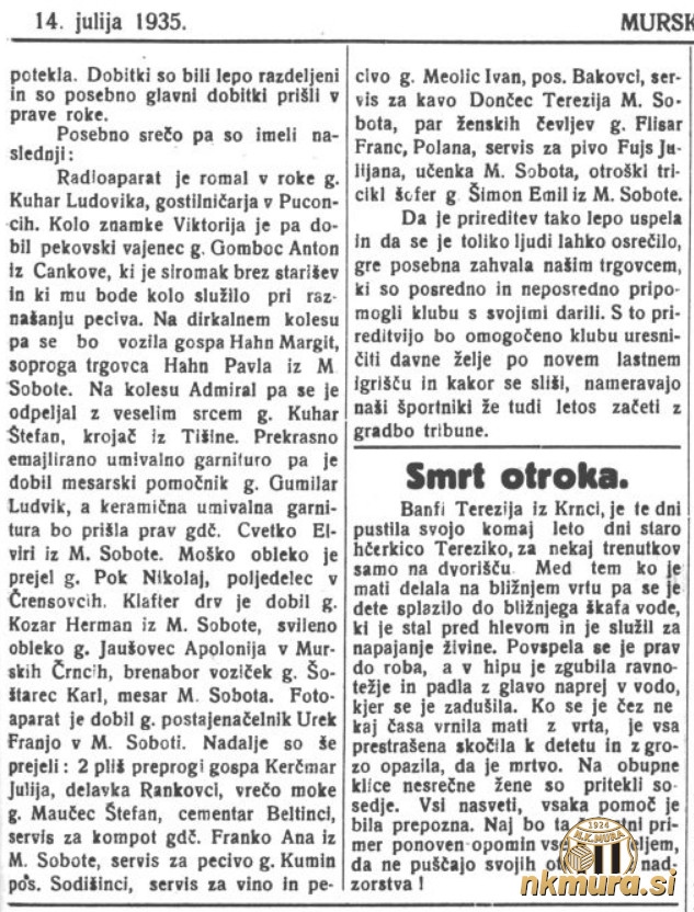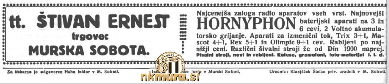 Nagrade je prispevalo ogromno podjetnikov in trgovin. Glavno nagrado, radio Hornyphon, je prispevala trgovina Štivan Ernest iz Murske Sobote. Avtorske pravice: nkmura.si Foto: Murska Krajina, 20. januar 1935