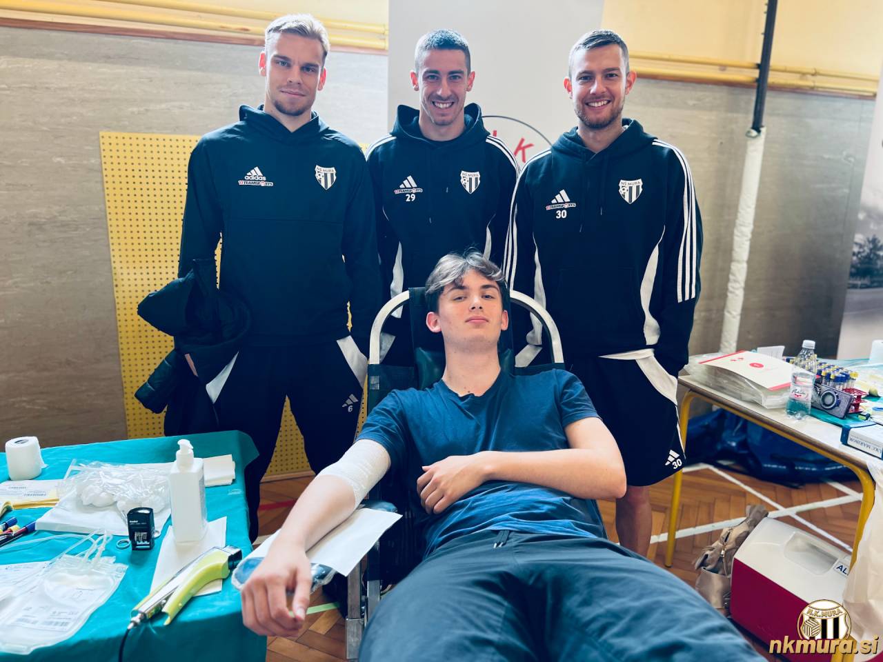 Aljaž Antolin, Dario Vizinger in Almin Kurtović z darovalcem. Avtorske pravice: nkmura.si Foto: NŠ Mura
