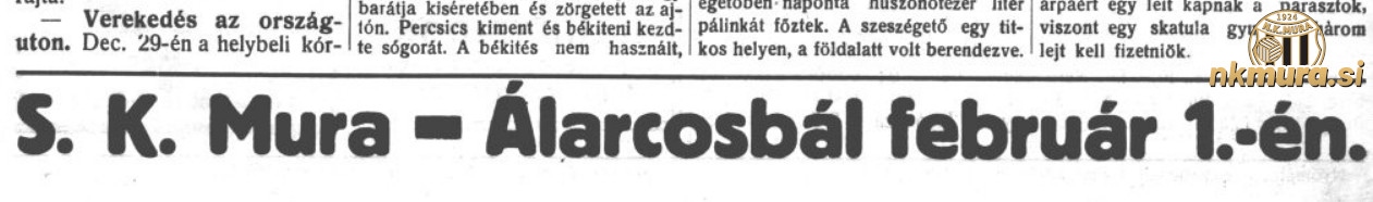 Tradicionalna maškerada, ki jo pripravlja športni klub Mura je bila 1. februarja 1931 v restravraciji Faflik. Za zabavo je poskrbela mariborska jazz skupina. Nagrado za najboljšo masko sta prejeli Rozsika Heimer in Marica Cimperman.