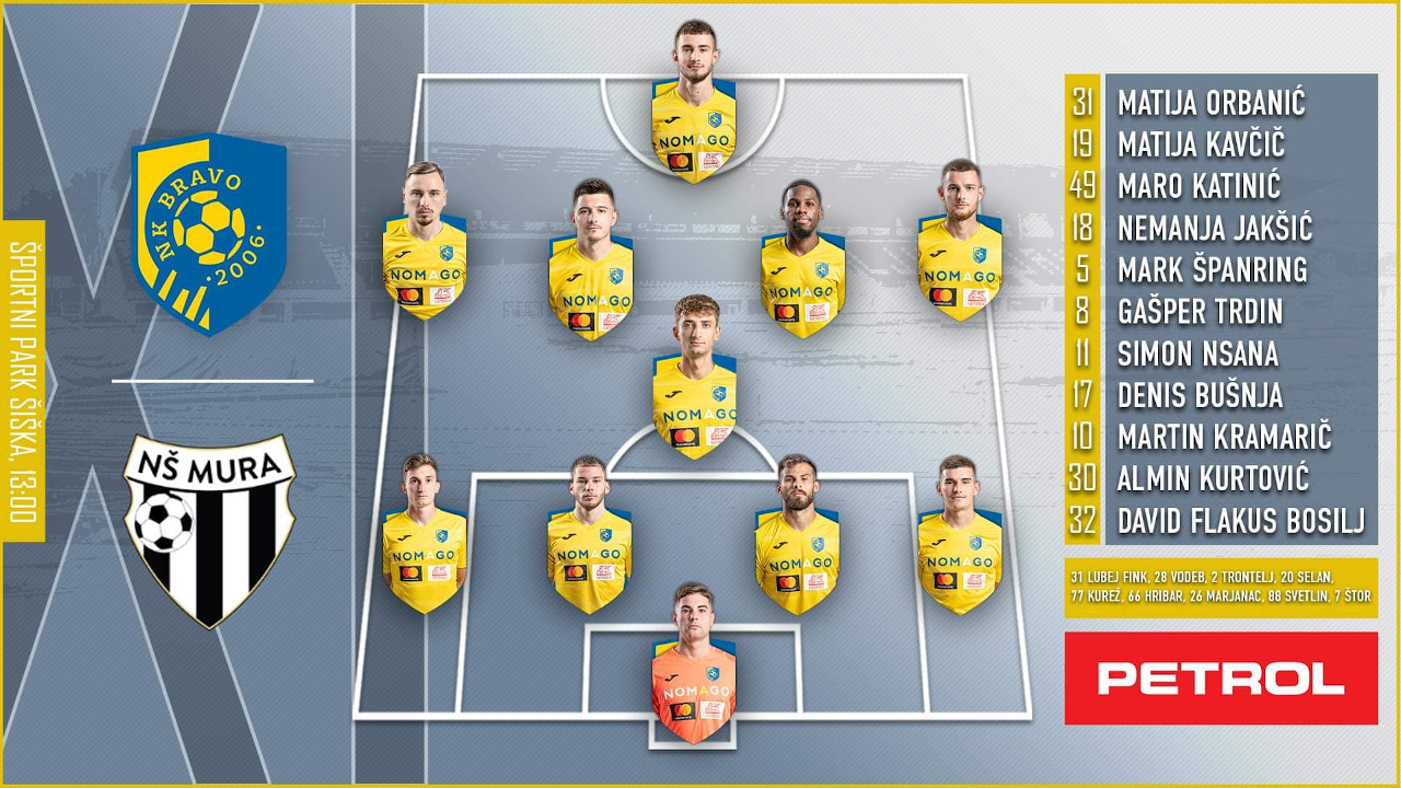 Postava Brava: Orbanić, Španring, Trdin, Kramarič, Nsana, Jakšič, Bušnja, Kavčič, Kurtovič, Flakus Bosilj in Katinić. Trener: Dejan Grabić.