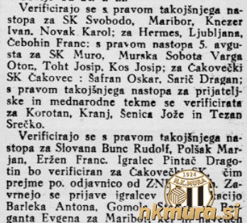 Zadnji teden julija so Muro okrepili trije novi igralci: Oton Varga, Josip Toth in vratar Josip Kos. Pravico nastopa bodo imeli 5. avgusta 1933.