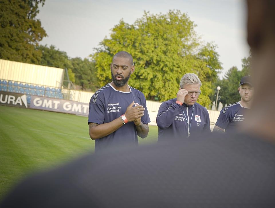 Trener David Nielsen (levo) daje navodila svojim nogometašem. Foto: facebook AGF Aarhus