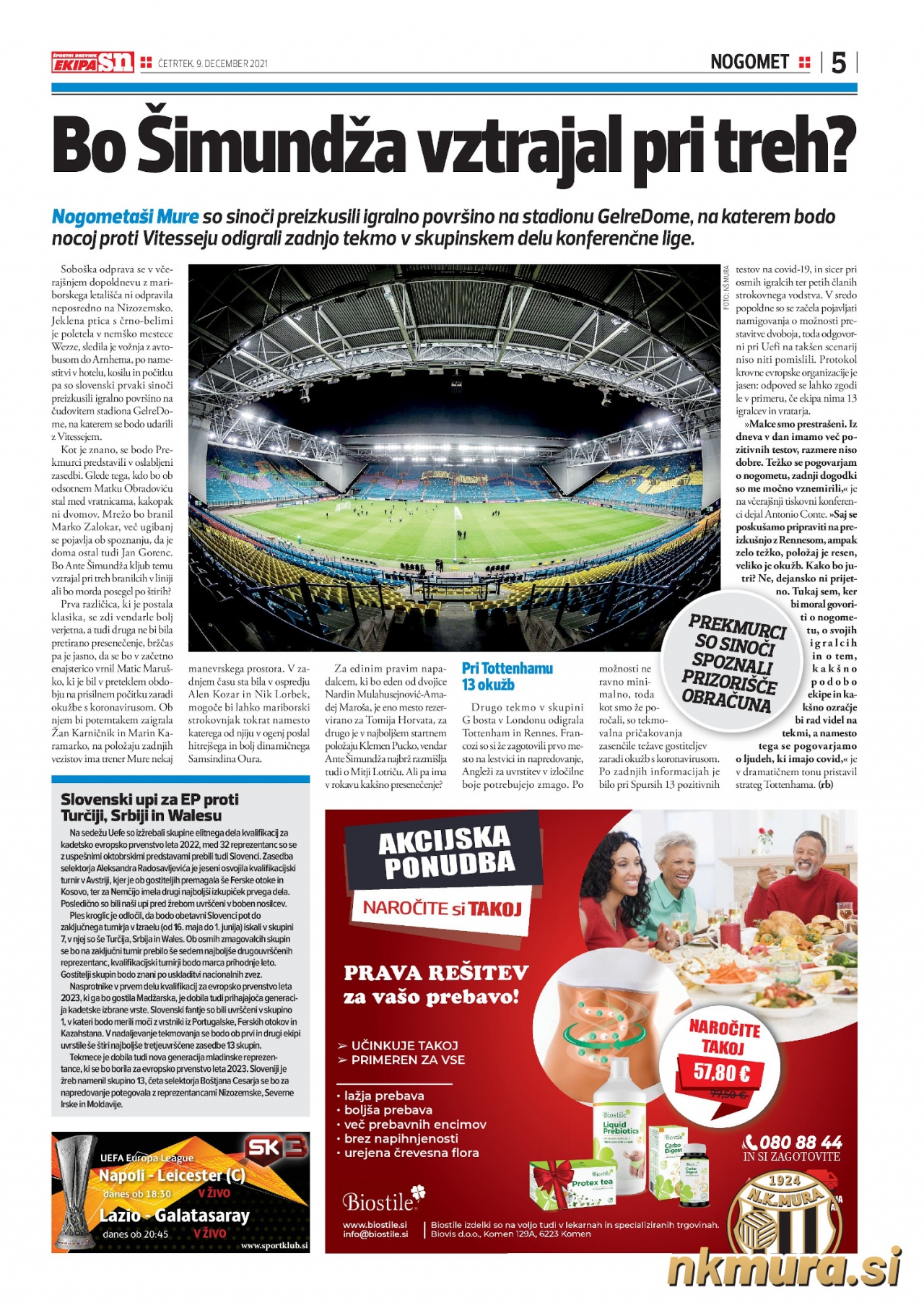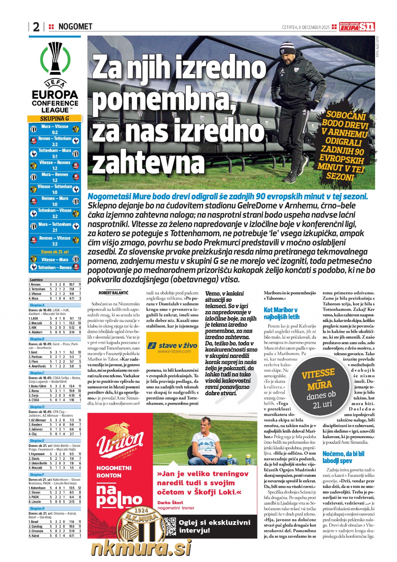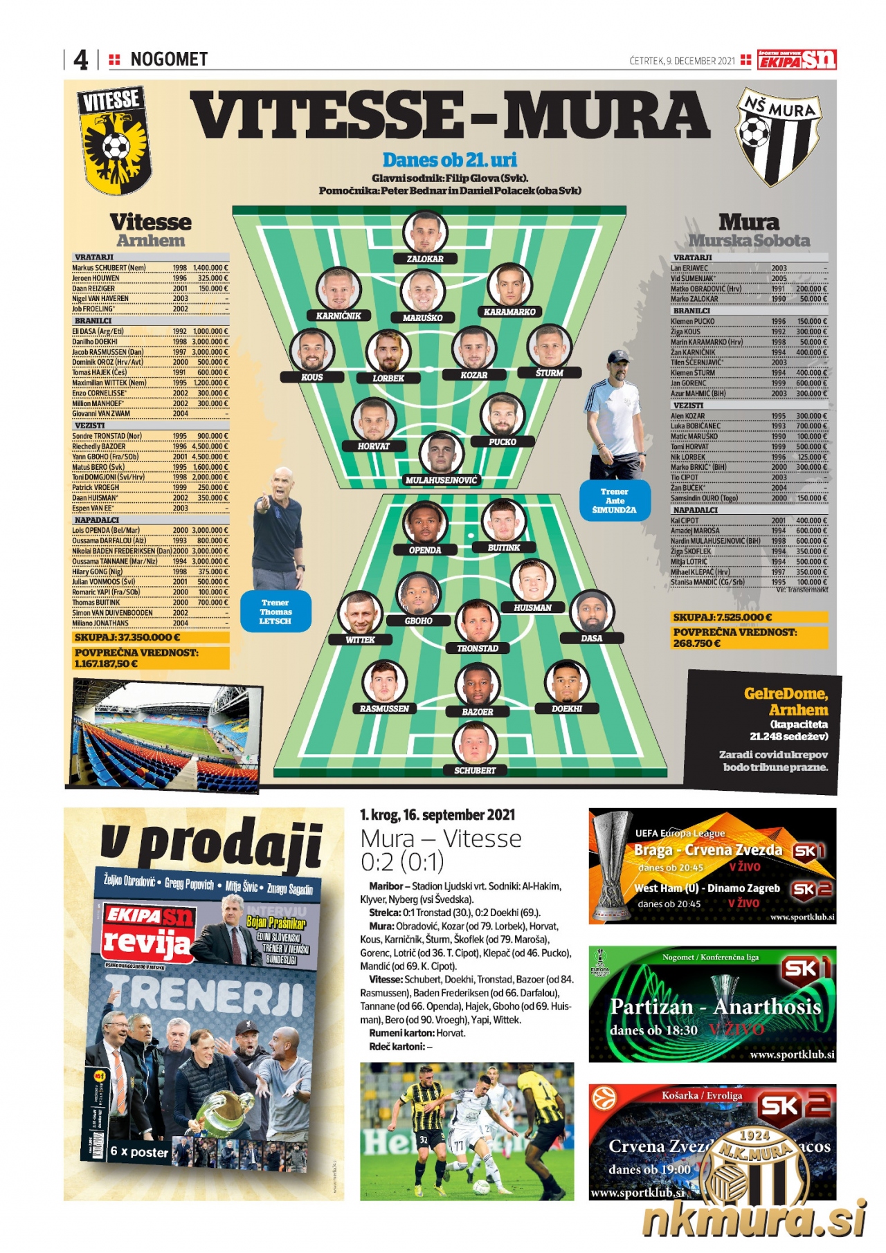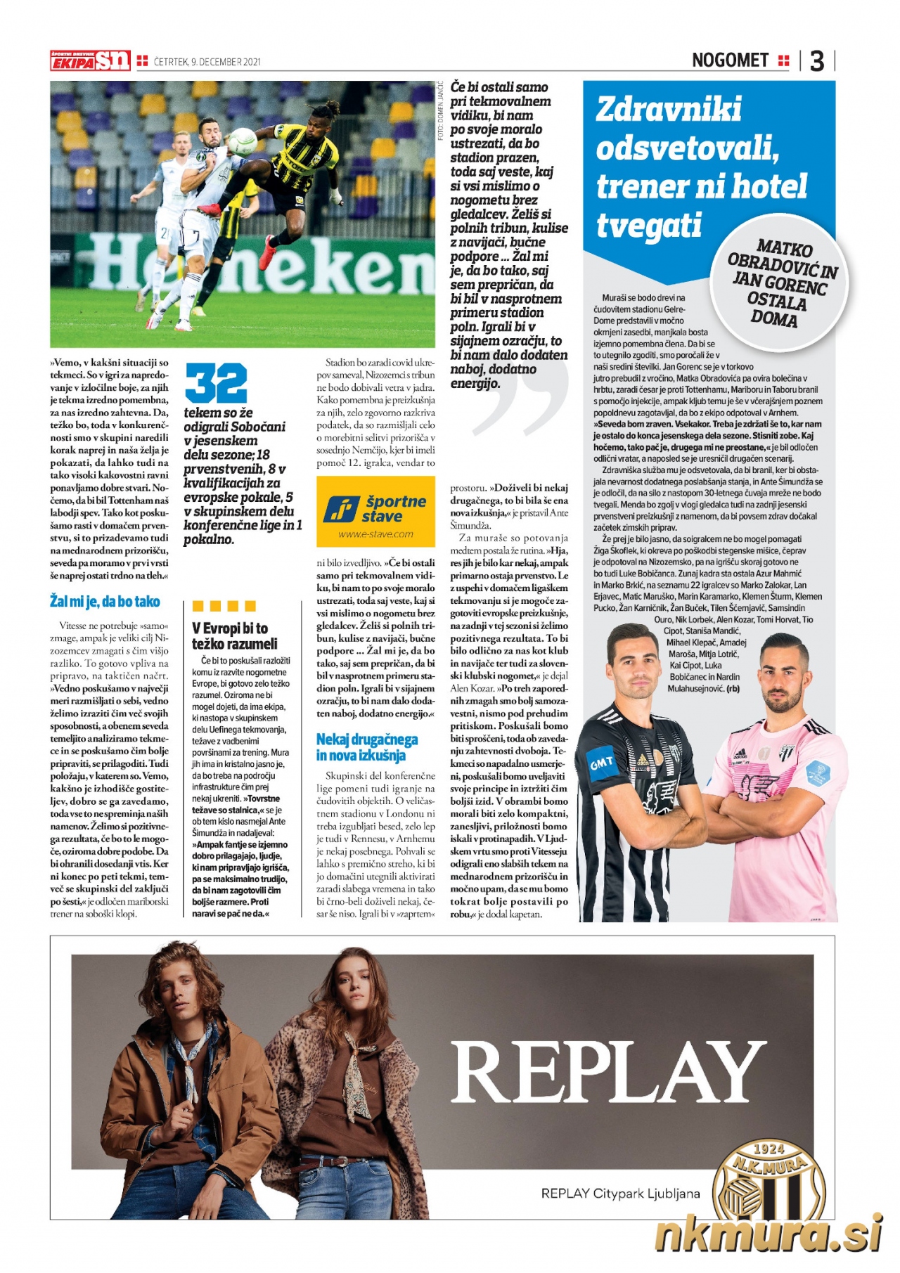 Nogometaši Mure so varno prispeli na Nizozemsko in se pripravljajo na jutrišnjo tekmo proti Vitesseju. Danes zvečer ob 18.30 so opravili novinarsko konferenco, pol ure pozneje pa še uradni trening.