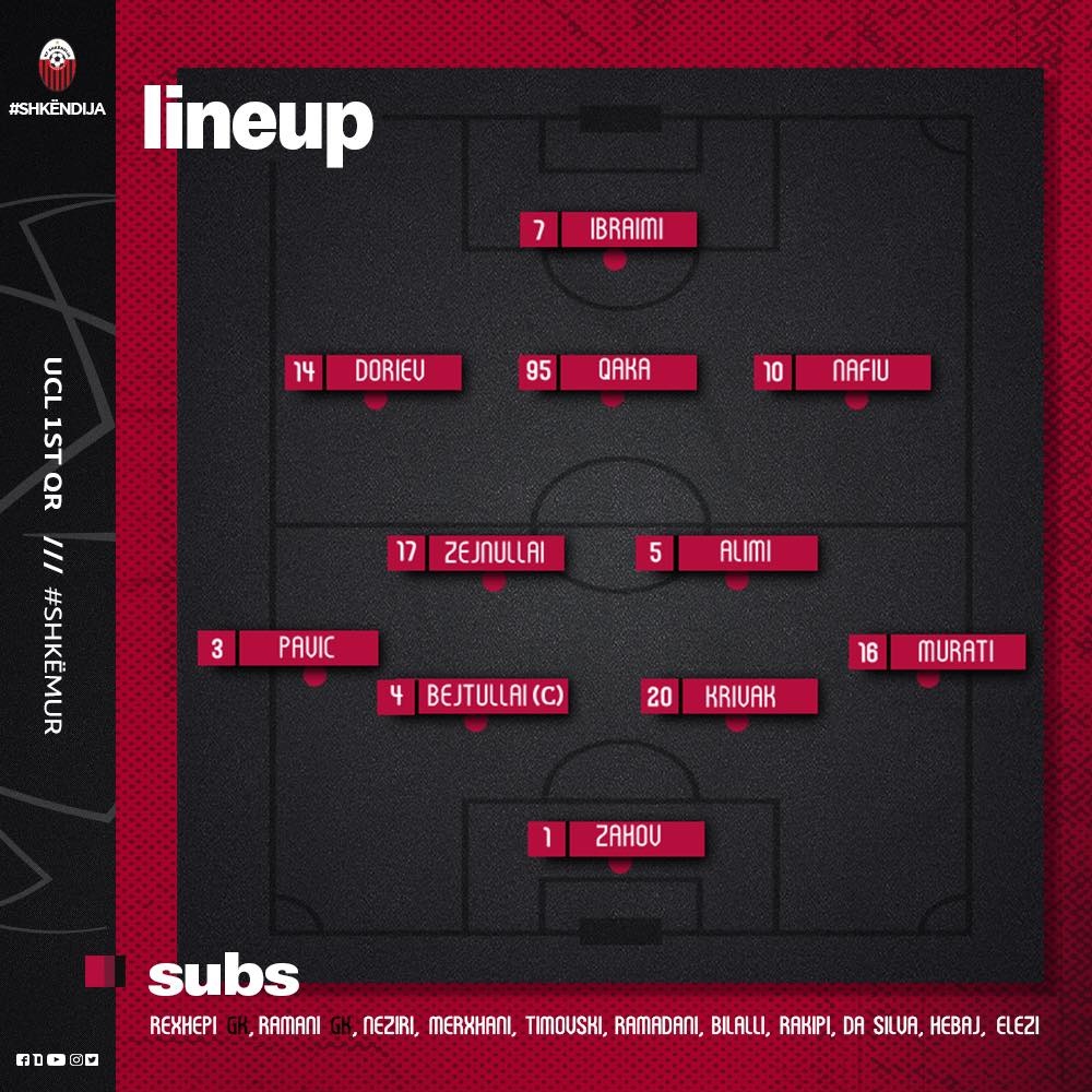Postava Shkëndije: Zahov, Pavić, Bejtulai, Alimi, B. Ibraimi, Nafiu (od 64. Igor da Silva), Doriev (od 81. Elezi), Murati, Zejnullai (od 64. Hebaj), Krivak, Qaka. Trener: Ernest Gjoka