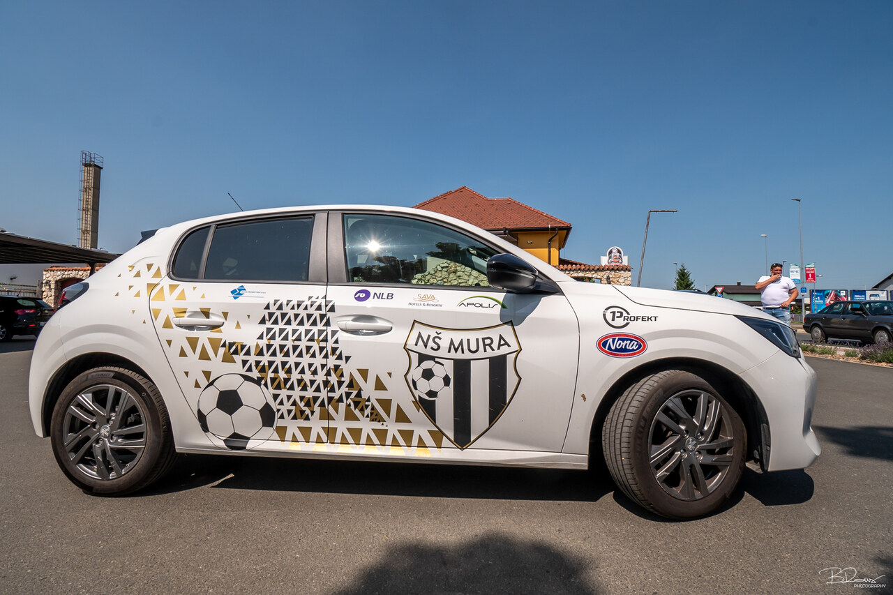 Avtomobil z Murinim logotipom pred gostilno Nona. Avtorske pravice: nkmura.si Foto: Boštjan Rous