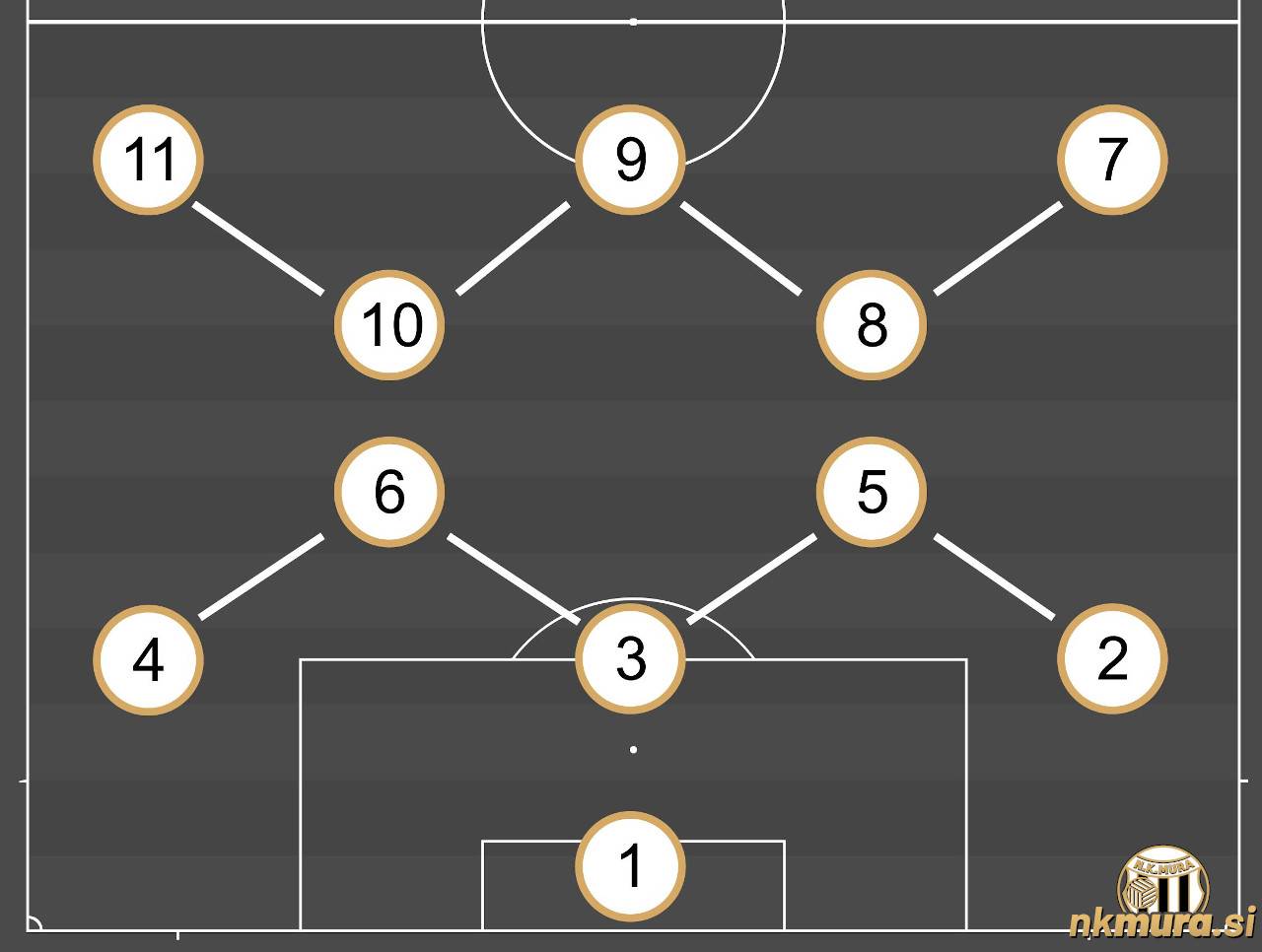 Piramida je bil prvi splošno uporabljan igralni sistem, ki so ga razvili Škoti. Bil je izrazito napadalno usmerjen, saj je v napadu igralo pet igralcev. Z njim je Urugvaj leta 1924 in 1928 zmagal na Olimpijskih igrah, leta 1930 pa postal svetovni prvak. Avtorske pravice: nkmura.si Foto: NK Mura skozi čas