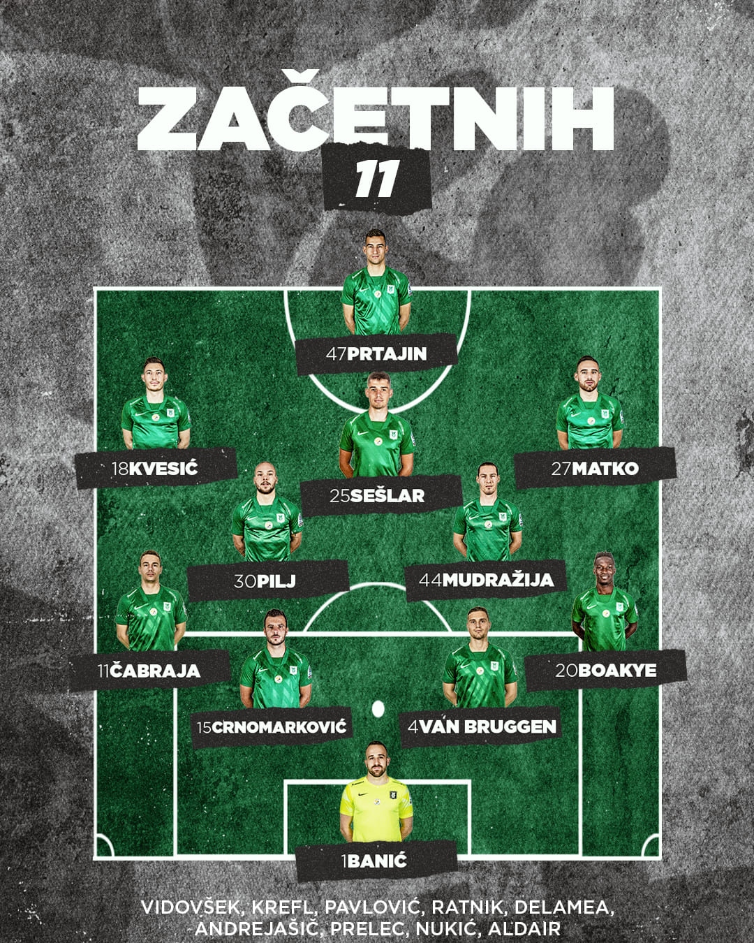 Olimpija: Banić, van Bruggen, Čabraja, Crnomarković, Kvesić, Boakye (od 88. Aldair), Sešlar (od 61. Nukić), Matko (od 72. Prelec), Pilj, Mudražija, Prtajin. Trener: Dino Skender.