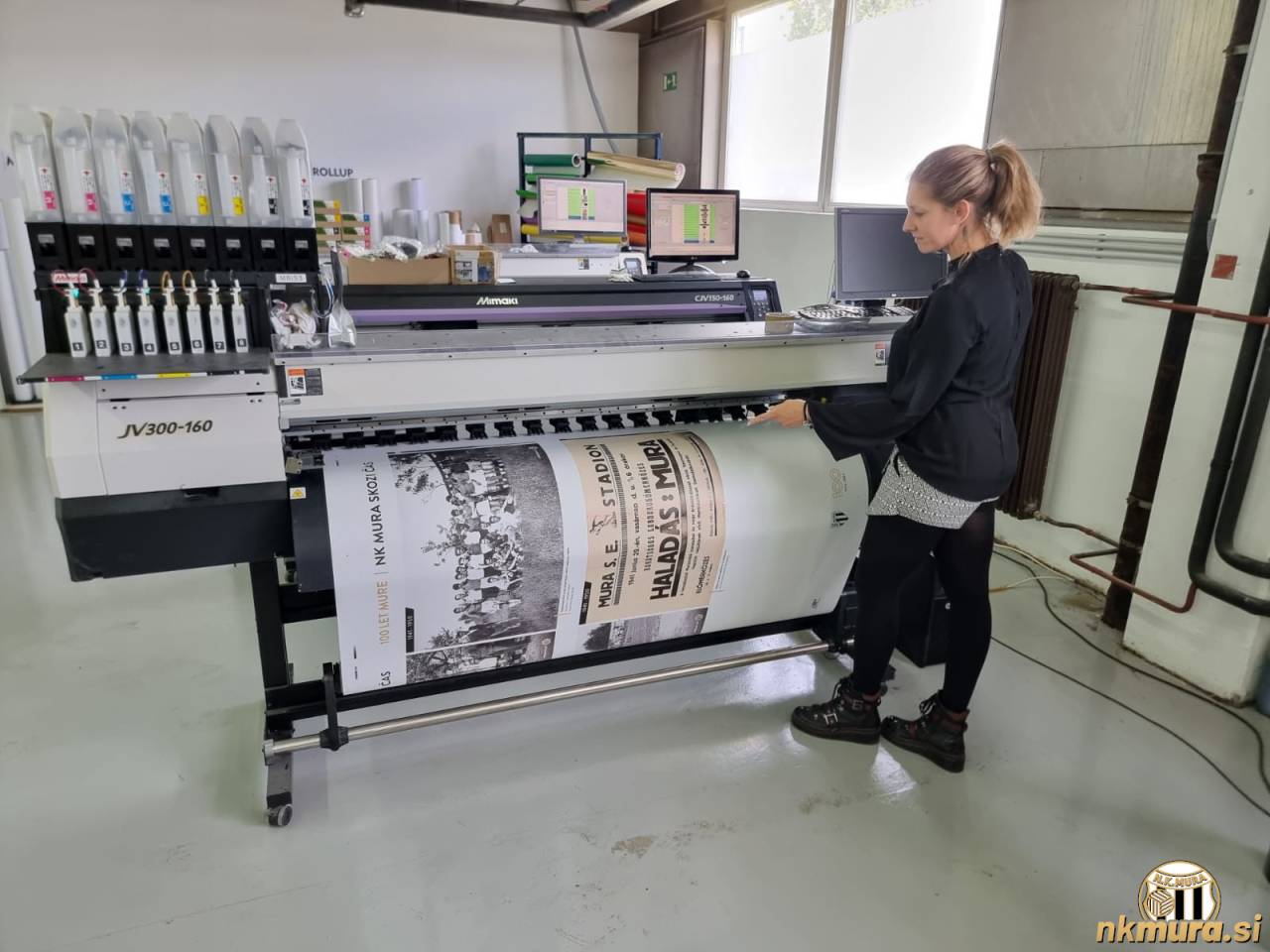 Tisk fotografij v tiskarni aiP Praprotnik za razstavo ob stoletnici SK Mure. Avtorske pravice: nkmura.si Foto: arhiv NK Mura skozi čas