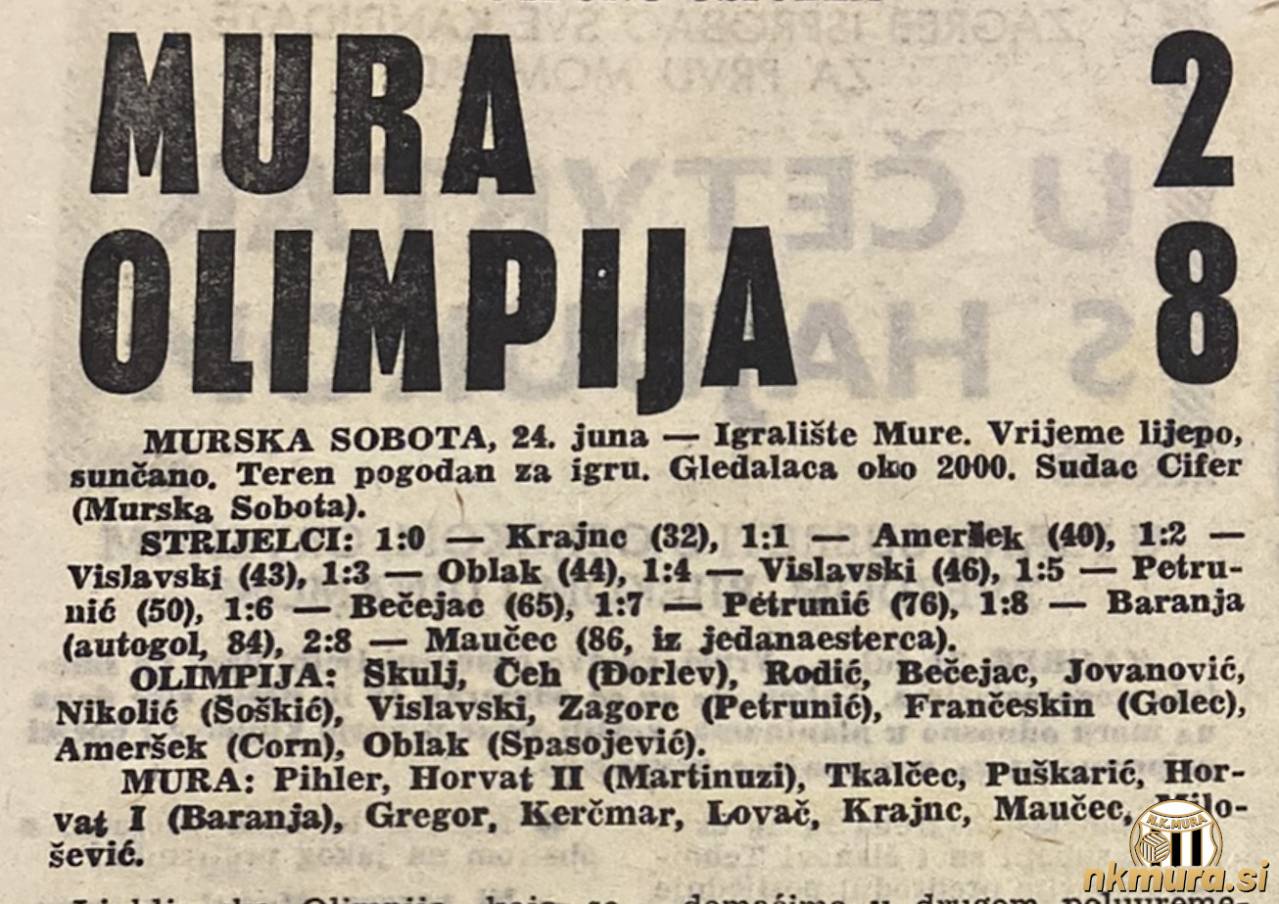 Mura : Olimpija, 23. julija 1967. Avtorske pravice: nkmura.si Foto: Sportske novosti