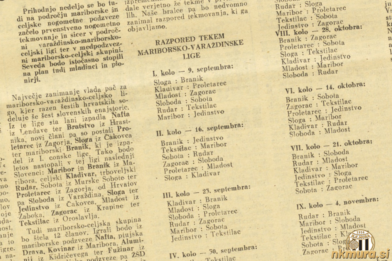 Razpored MVC lige v sezoni 1956/1957. Sobočani se bodo v prvem krogu odpravili v Varaždin. Avtorske pravice: nkmura.si Foto: Polet, 2. september 1956