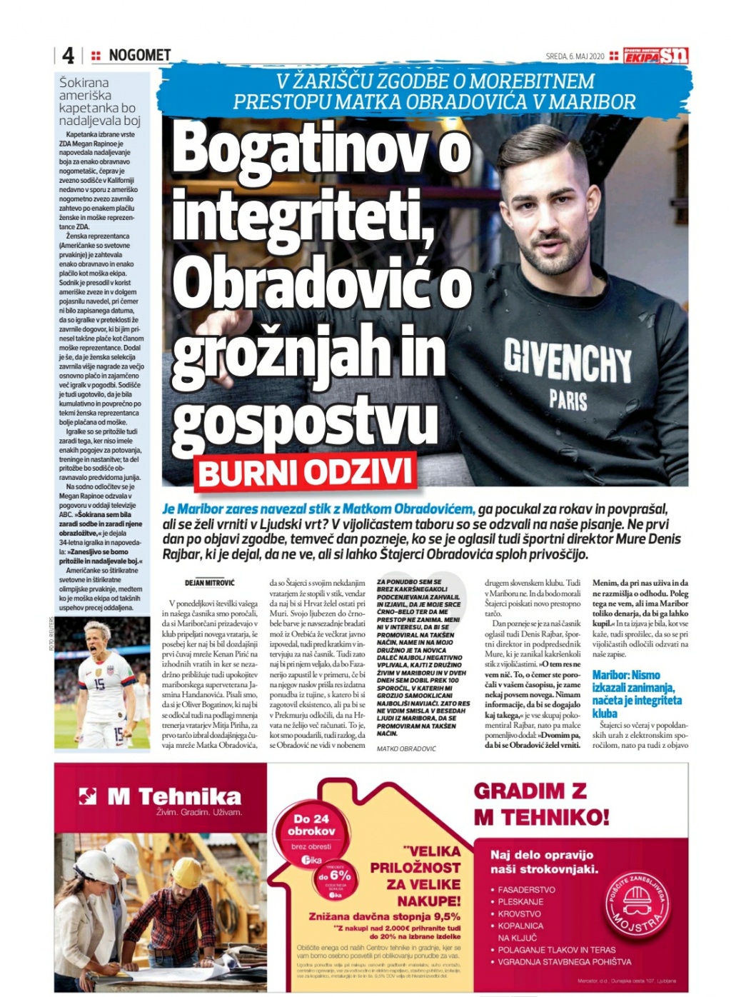 Vprašanje o morebitnem prestopu Matka Obradovića v Maribor kot vse kaže ni več vprašanje. Matko Obradović je v Ekipi pojasnil, kako so ga prepričevali da se vrne v Maribor in zakaj je rekel ne.