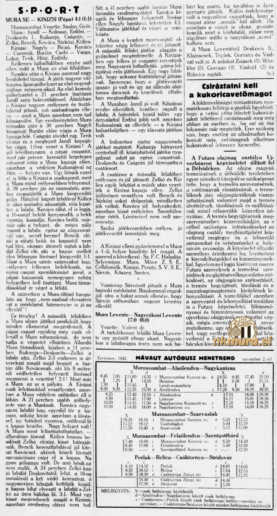 Nogometaši Mure so v 13. krogu prvenstva na Fazaneriji gostili Pápai MÁV Kinizsi in zmagali s 4:1 (1:1). Črno-beli so opravičili vlogo favorita in po bolečem porazu v Sombotelu tokrat strnili svoje vrste in povsem zasluženo zmagali.