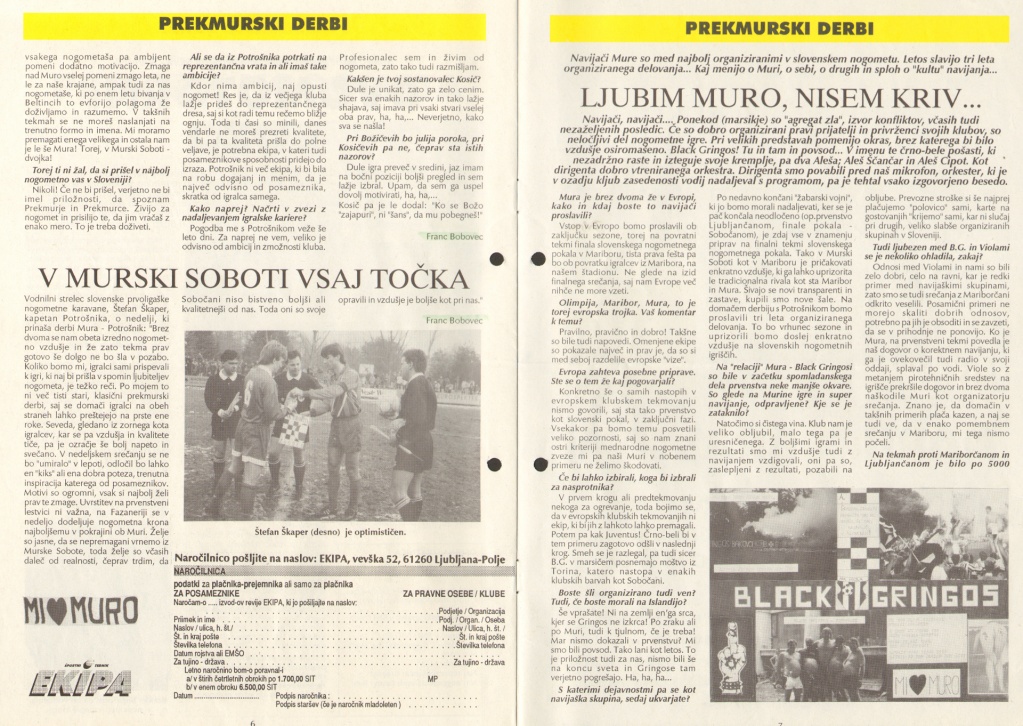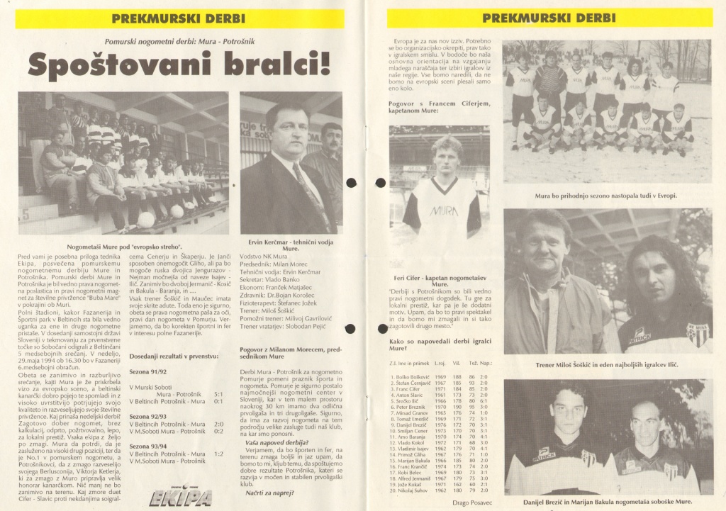 Osrednji slovenski športni časnik Ekipa je pred derbijem 28. kroga 1.SNL natisnil posebno izdajo Ekipe, posvečeno tej tekmi. V njej je veliko zanimivega iz tabora Mure in Potrošnika, objavljen pa je tudi intervju z Black Gringosi.