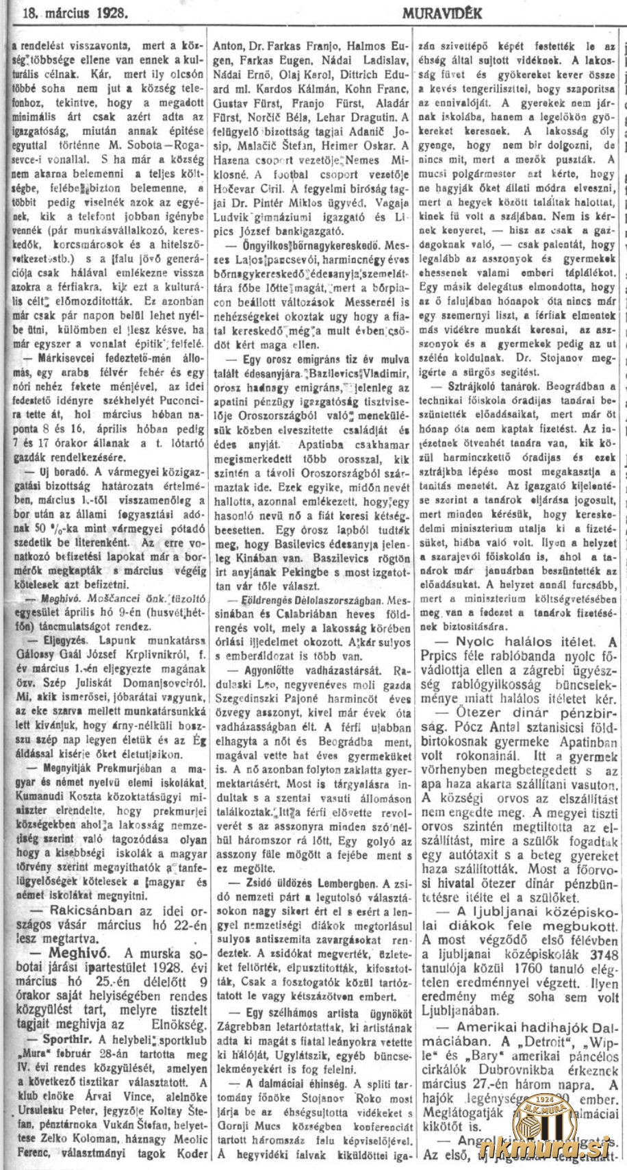 Občni zbor Mure je potekal 28. februarja 1928 v kavarni Benko. Avtorske pravice: nkmura.si Foto: Muravidek, 19. februar 1928