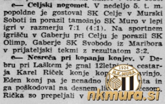 To je bila druga tekma med Muro in Celjem v zgodovini obeh klubov. Prvo so leta 1925 z 0:5 dobili Celjani.
