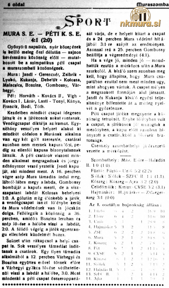 V 6. krogu prvenstva so se Muraši na domačem terenu pomerili s Pétijem oz. krajše PKSE-jem in zmagali s 4:1. Ob polčasu je bilo 2:0.