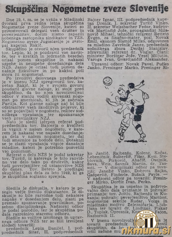 Dne 19. marca 1949 je v Ljubljani potekala redna letna skupščina Nogometne zveze Slovenije. Na skupščini so podelili tudi priznanja in pohvale za uspešno in požrtvovalno delo na nogometnem področju. Priznanje je prejel Vladimir Kukanja, nekdanji igralec, član upravnega odbora NZS in nogometni sodnik.