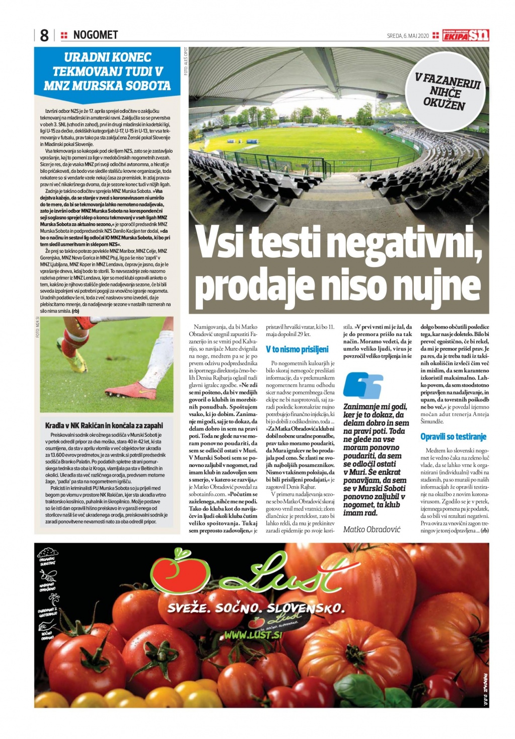 Nogometaši Mure so opravili testiranje na koronavirus. Vsi testi so bili negativni. Foto: EkipaSN